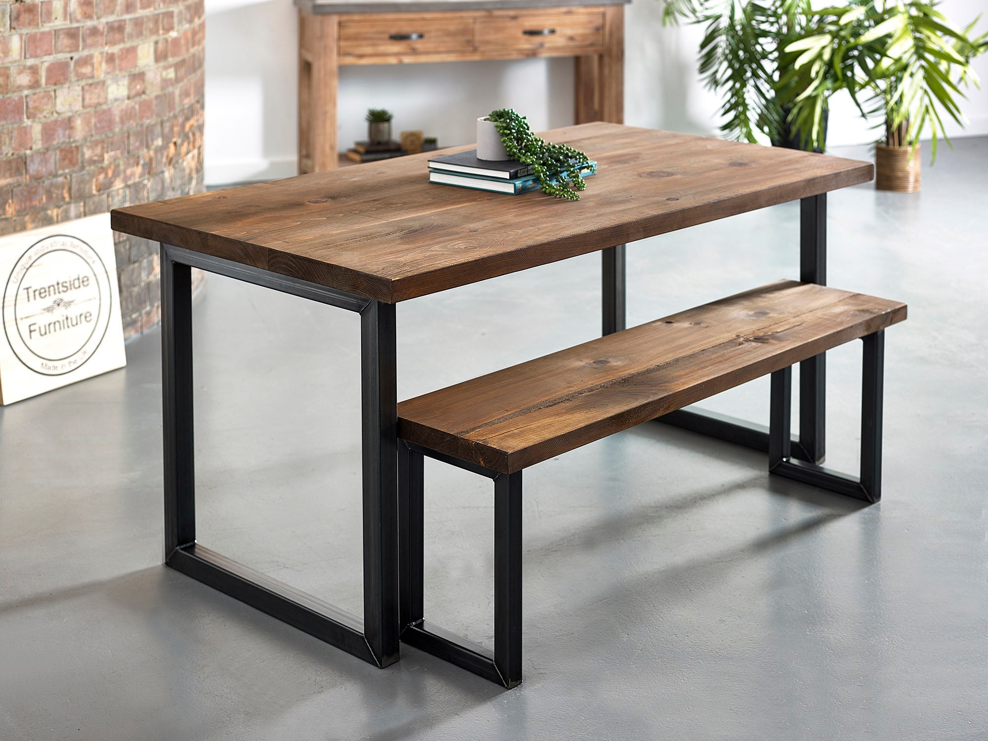Industrial Board Dining Table And Bench 45mm Thick Top Bespoke Etsy Uk