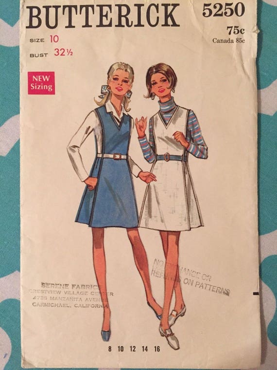Vintage 1970 S Butterick 5250 Sewing Pattern Size 10 Etsy