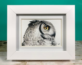 Great Horned Owl Original Colored Pencil Drawing In A White Etsy Uk
